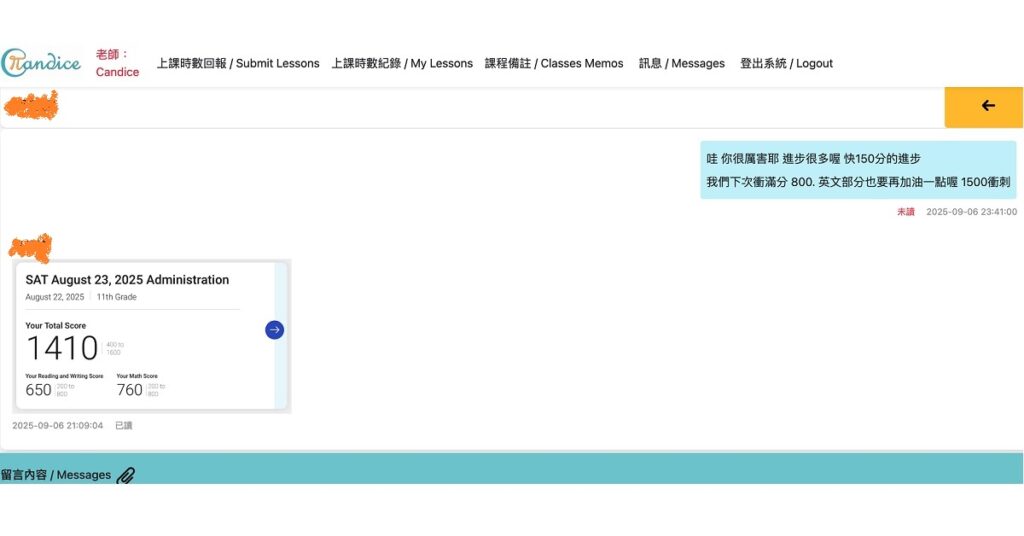 最後她的SAT數學從原本的630,一路進步到750分。這樣的成績,對她來說是非常大的突破。我自己看到分數的時候,也替她感到特別開心。